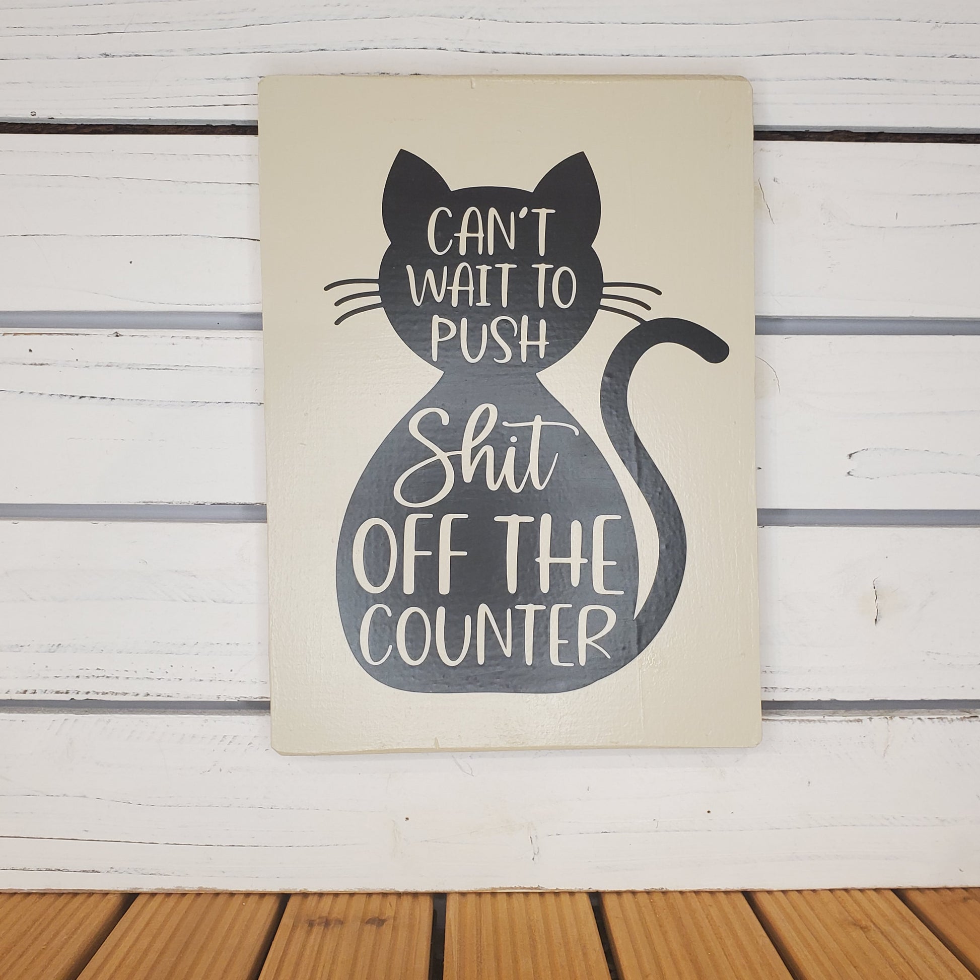 Show off your sense of humor with our “Can’t Wait to Push Sh*t Off the Counter” 8x10 White Wooden Sign, designed in a playful cat silhouette. With its rustic white finish, bold black lettering, and adorable feline shape, this cheeky piece adds charm and personality to any room—especially for cat owners who know the struggle all too well. Perfect for a shelf, countertop, or wall, it brings a fun, relatable touch that guests can’t help but notice.