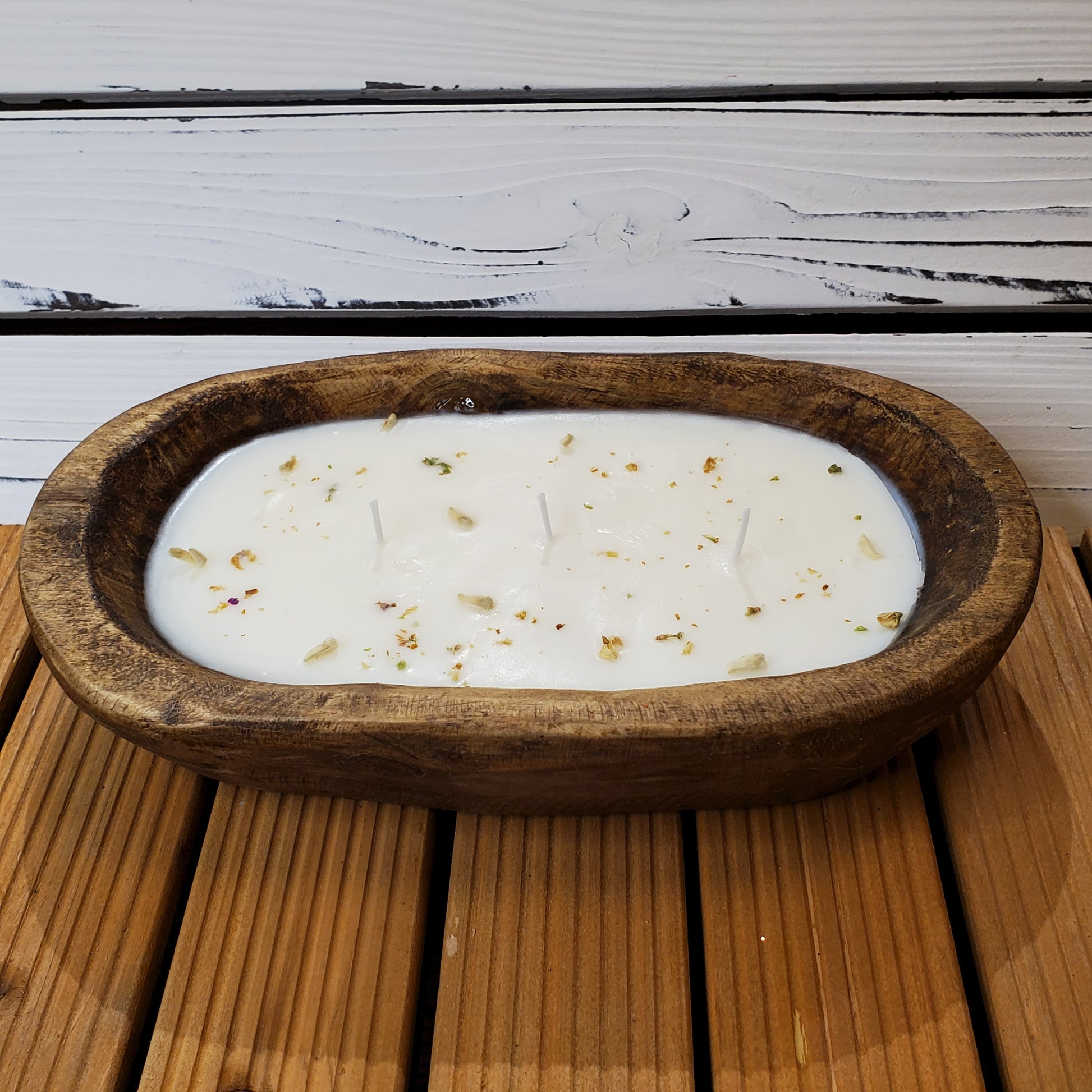 Bring warmth and texture into your home with the Soy Wax Wooden Dough Bowl with Dried Flowers. Crafted with clean-burning soy wax and finished with dried botanical accents, this candle is infused with a rich blend of coconut, ginger, and almond, blending simplicity with handcrafted elegance and a warm, inviting aroma.